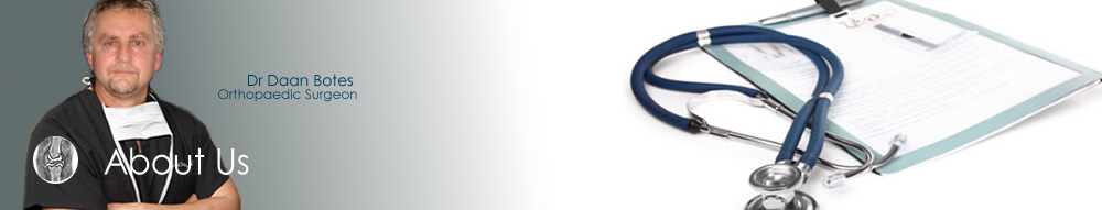 | Dr Daan Botes runs an orthopaedic surgery and arthroplasty practice in Mediclinic hospital, Paarl since 1990 (21 years). Dr Botes has travelled extensively overseas and have gained experience attending arthroplasty surgery in America, England, Wales, France, Australia, Spain, Belgium, Germany, Italy and Switzerland. |
