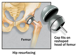 Hip resurfacing is a bone conserving alternative to conventional total hip replacement (THR). Unlike traditional hip replacement, hip resurfacing doesn't replace the "ball" of the hip with a metal or ceramic ball. Instead, the damaged hip ball is reshaped and capped with a metal prosthesis. The damaged hip socket also is fitted with a metal prosthesis — similar to what is used in a conventional hip replacement.