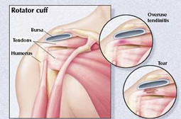 A rotator cuff injury includes any type of irritation or damage to your rotator cuff muscles or tendons. Causes of a rotator cuff injury may include falling, lifting and repetitive arm activities — especially those done overhead, such as throwing a baseball or placing items on overhead shelves.